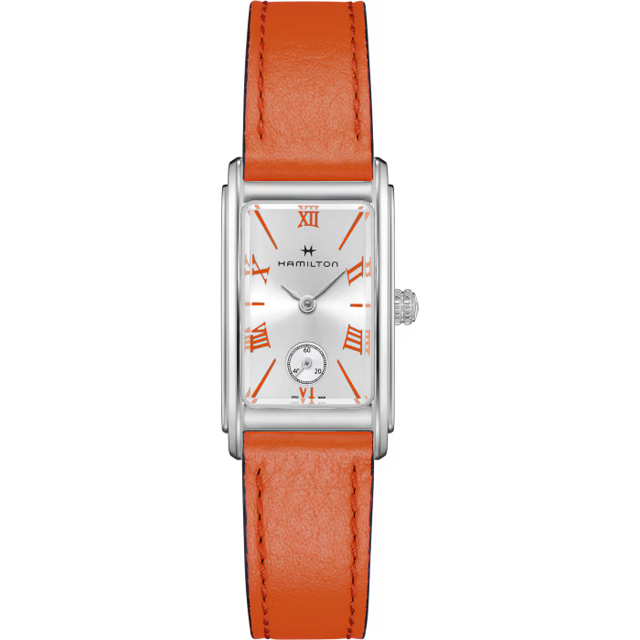 Grazie al cinturino in pelle nelle vivaci tonalità corallo e ai numeri romani in colori abbinati, il Lady Ardmore Quartz non è più solo una reinterpretazione Art Deco, ma diventa una dichiarazione all’avanguardia. Sofisticata e giocosa, la cassa spigolosa fonde in modo impeccabile il classico stile americano con le tonalità contemporanee, per un look che non passa inosservato.