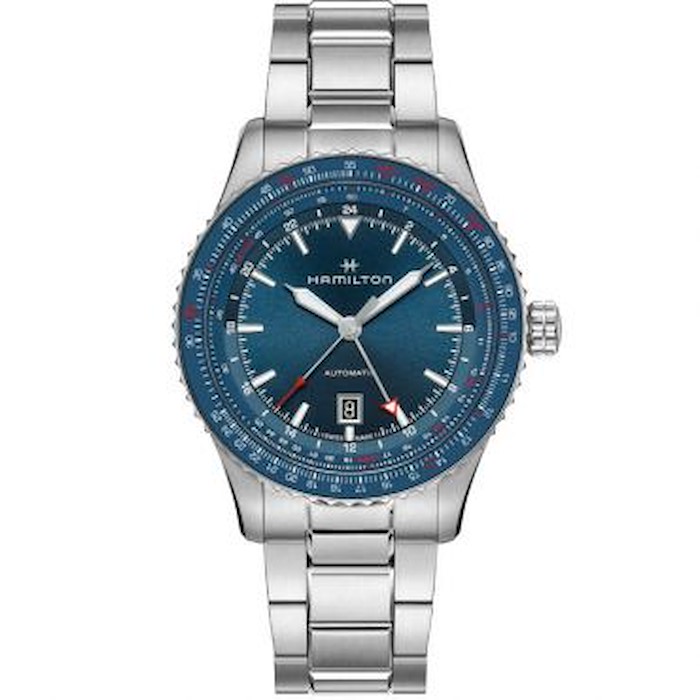 Sorvola i cieli con questo Khaki Aviation Converter Auto Chrono caratterizzato da una lunetta girevole bidirezionale con regolo calcolatore che consente di effettuare conversioni e misurazioni complicate in un attimo. Dotato del movimento H-21-Si con spirale in silicio per garantire prestazioni e precisione maggiori, questo orologio da pilota fonde alla perfezione funzionalità ed estetica aeronautica: la sua cassa in acciaio da 44 mm è abbinata a un bracciale in acciaio e un quadrante blu che evoca l’immagine di un cielo sereno.