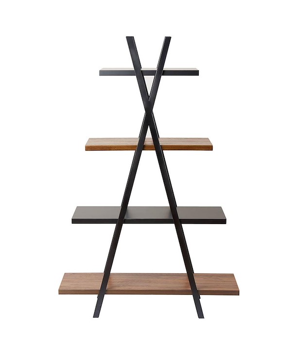 Libreria con 4 ripiani dalla struttura in metallo nero e piani in MDF nobilitato di color legno e nero. Il complemento d'arredo perfetto per progettare un ambiente moderno e sofisticato. Ideale da abbinare con il tavolino da salotto e la consolle del mondo Contemporaneo.