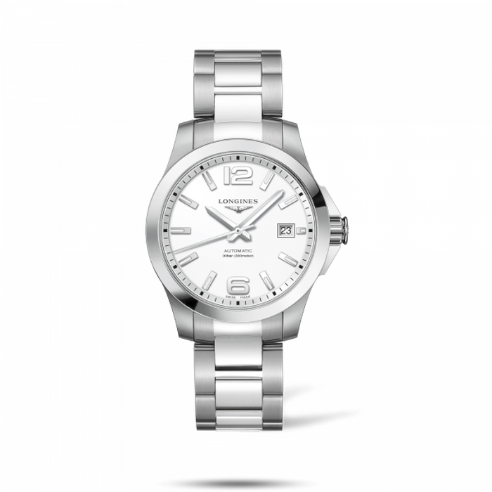 Longines Conquest rappresenta la quintessenza dell'eleganza sportiva del marchio. Nel progettare questo modello è stata dedicata un'attenzione particolare all'estetica della lunetta, della corona con cabochon e delle maglie. Elegante connubio di performance ed eleganza, il Longines Conquest possiede tutte le caratteristiche tecniche necessarie a soddisfare le attese degli sportivi più esigenti. Al contempo sobrio e sofisticato, questo modello non mancherà di catturare l'attenzione nelle serate più chic o nelle tribune di prestigiose corse ippiche.