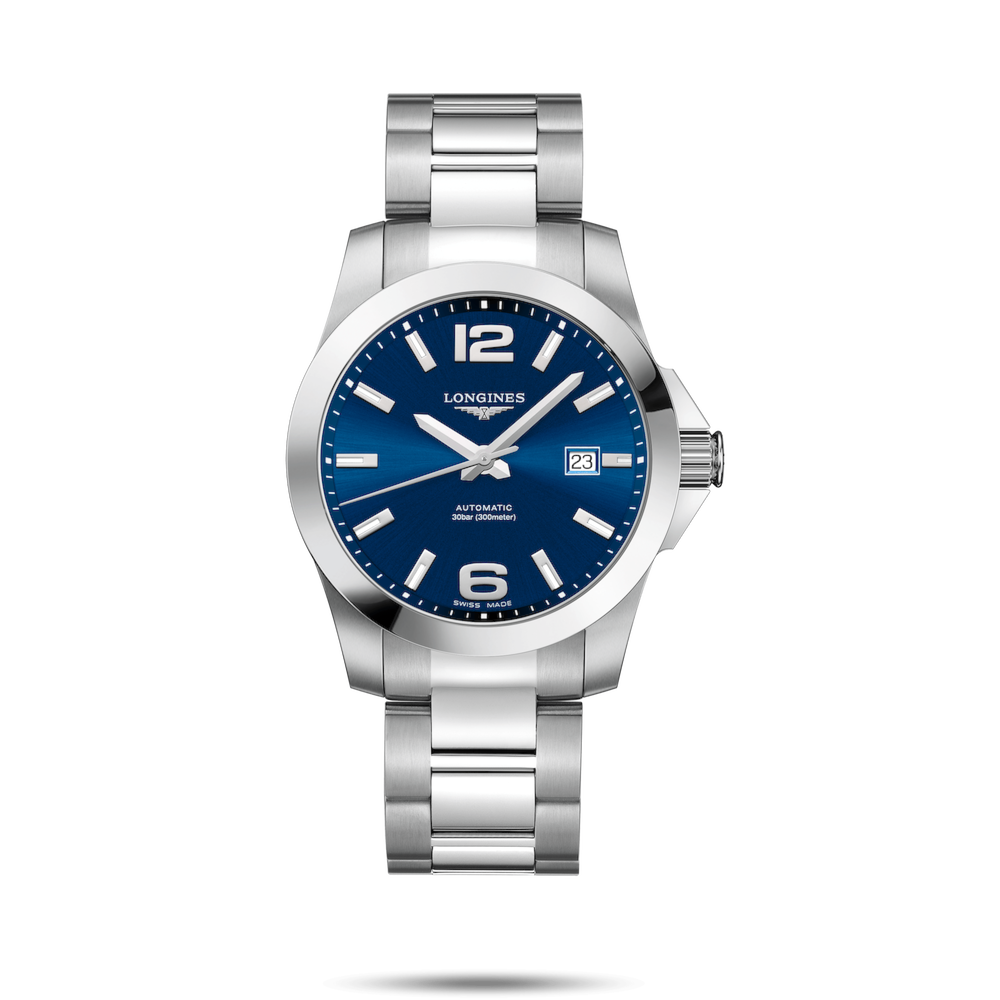 Longines Conquest rappresenta la quintessenza dell'eleganza sportiva del marchio. Nel progettare questo modello è stata dedicata un'attenzione particolare all'estetica della lunetta, della corona con cabochon e delle maglie. Elegante connubio di performance ed eleganza, il Longines Conquest possiede tutte le caratteristiche tecniche necessarie a soddisfare le attese degli sportivi più esigenti. Al contempo sobrio e sofisticato, questo modello non mancherà di catturare l'attenzione nelle serate più chic o nelle tribune di prestigiose corse ippiche.