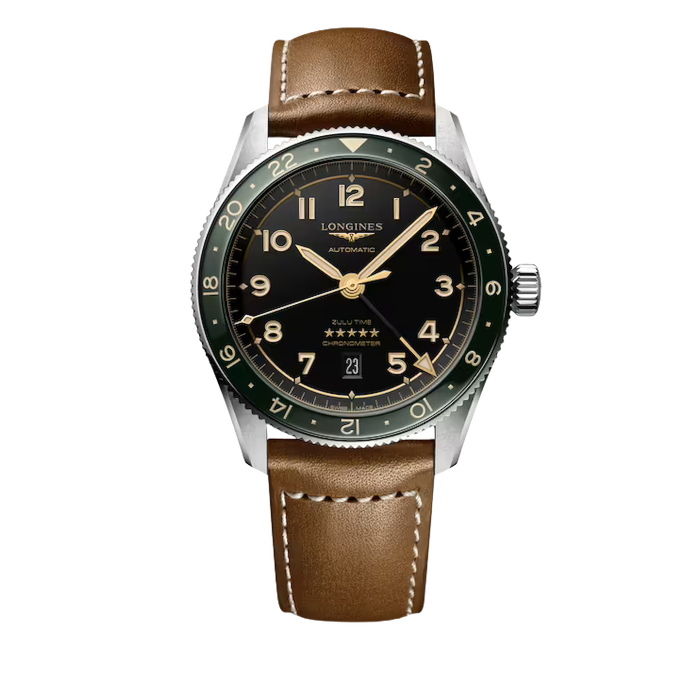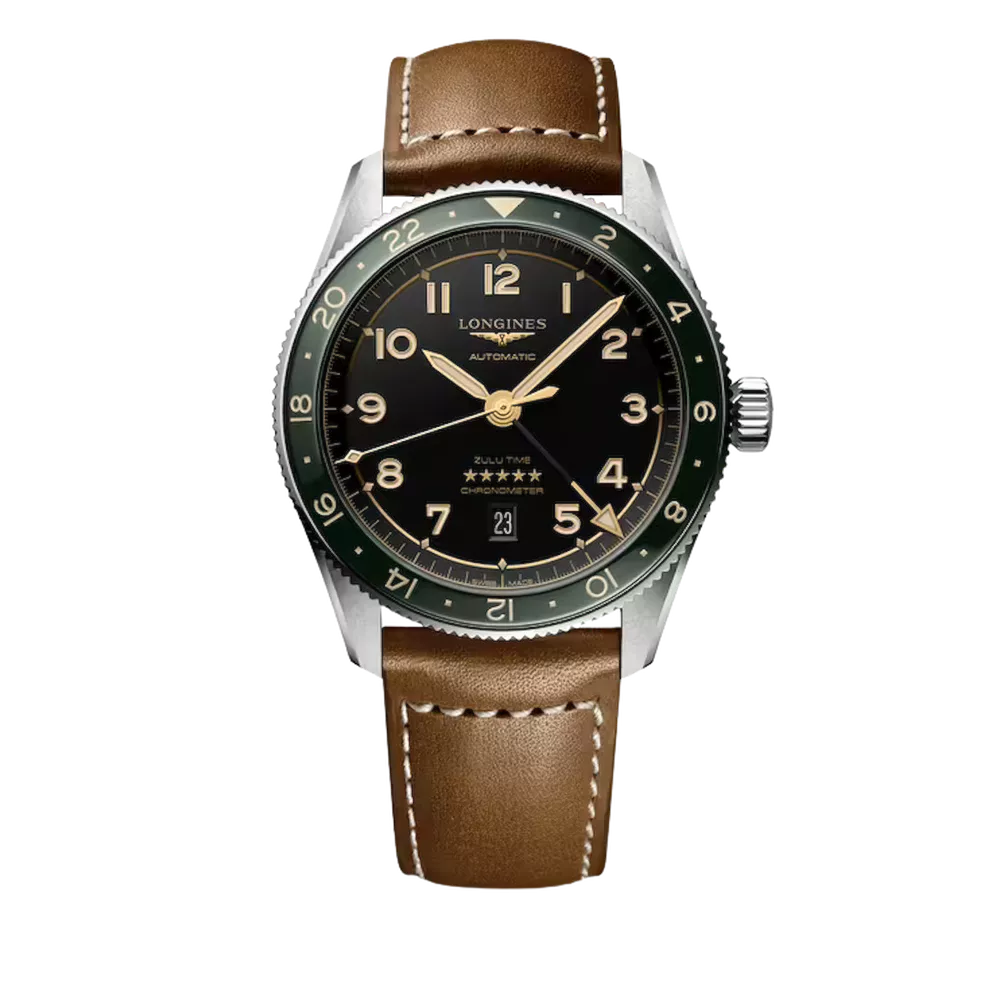 Il LONGINES Spirit Zulu Time simboleggia la maestria centenaria del marchio negli orologi con più fusi orari. Le sue origini e il suo nome derivano dal primo orologio da polso LONGINES con due fusi orari, realizzato nel 1925, che presentava la bandiera Zulu sul quadrante (dove Zulu si riferisce alla lettera “Z” che indica il tempo universale per gli aviatori). Esteticamente, il LONGINES Spirit Zulu Time si distingue per l’esecuzione meticolosa e la particolare cura dei dettagli. Presenta una lunetta girevole bidirezionale con inserto in ceramica. Ogni modello è alimentato da un esclusivo calibro LONGINES, dotato di un bilanciere-spirale in silicio, resistente ai campi magnetici e certificato come cronometro COSC.