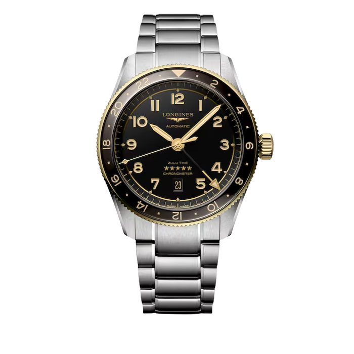 Il LONGINES Spirit Zulu Time simboleggia la maestria centenaria del marchio negli orologi con più fusi orari. Le sue origini e il suo nome derivano dal primo orologio da polso LONGINES con due fusi orari, realizzato nel 1925, che presentava la bandiera Zulu sul quadrante (dove Zulu si riferisce alla lettera “Z” che indica il tempo universale per gli aviatori). Esteticamente, il LONGINES Spirit Zulu Time si distingue per l’esecuzione meticolosa e la particolare cura dei dettagli. Presenta una lunetta girevole bidirezionale con inserto in ceramica. Ogni modello è alimentato da un esclusivo calibro LONGINES, dotato di un bilanciere-spirale in silicio, resistente ai campi magnetici e certificato come cronometro COSC.
