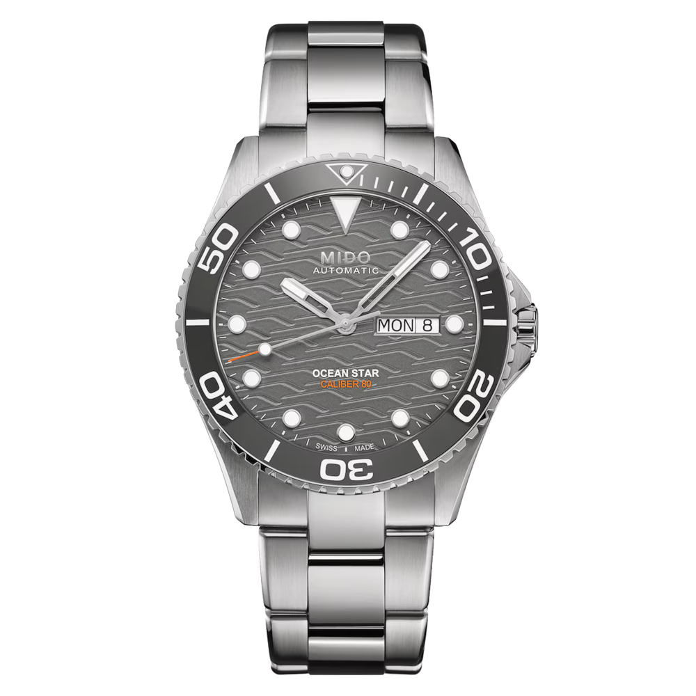 Mido ha inserito la ceramica - un materiale eccezionale per l'orologeria - nella lunetta rotante unidirezionale del suo Ocean Star 200C. Il quadrante è decorato con un motivo ondulato e con indici applicati individualmente, ricoperti da pigmenti di Super-Luminova® bianca. Questo orologio subacqueo è resistente fino a 20 bar (200m), con una forma della cassa che permette una protezione extra per la corona a vite. Il fondello della cassa è inciso con il logo Ocean Star. Il movimento automatico, inoltre, ha un'autonomia fino a 80 ore di riserva di carica.