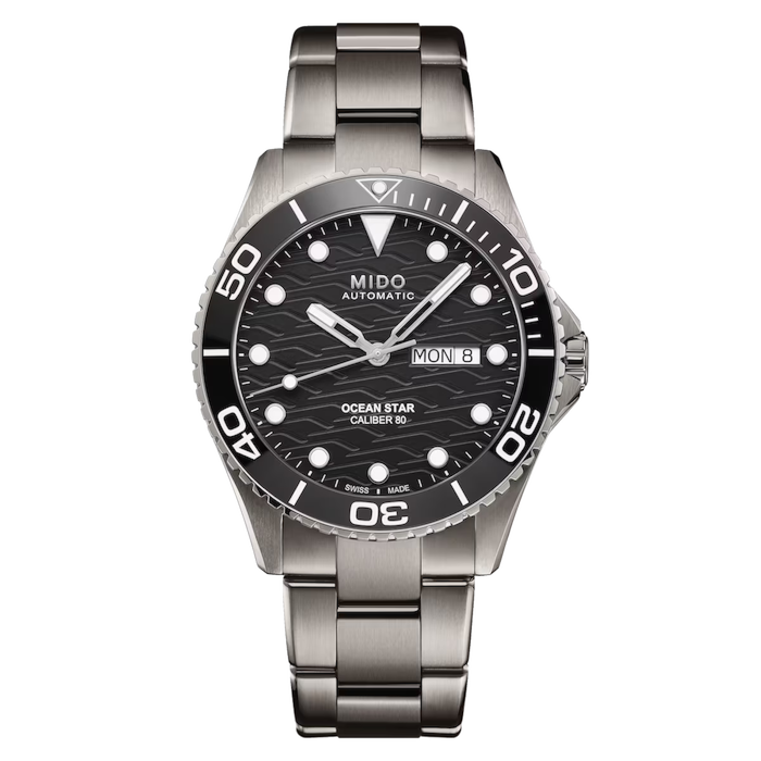 Mido ha inserito la ceramica - un materiale eccezionale per l'orologeria - nella lunetta rotante unidirezionale del suo Ocean Star 200C. Il quadrante è decorato con un motivo ondulato e con indici applicati individualmente, ricoperti da pigmenti di Super-Luminova® bianca. Questo orologio subacqueo è resistente fino a 20 bar (200m), con una forma della cassa che permette una protezione extra per la corona a vite. Il fondello della cassa è inciso con il logo Ocean Star. Il movimento automatico, inoltre, ha un'autonomia fino a 80 ore di riserva di carica.