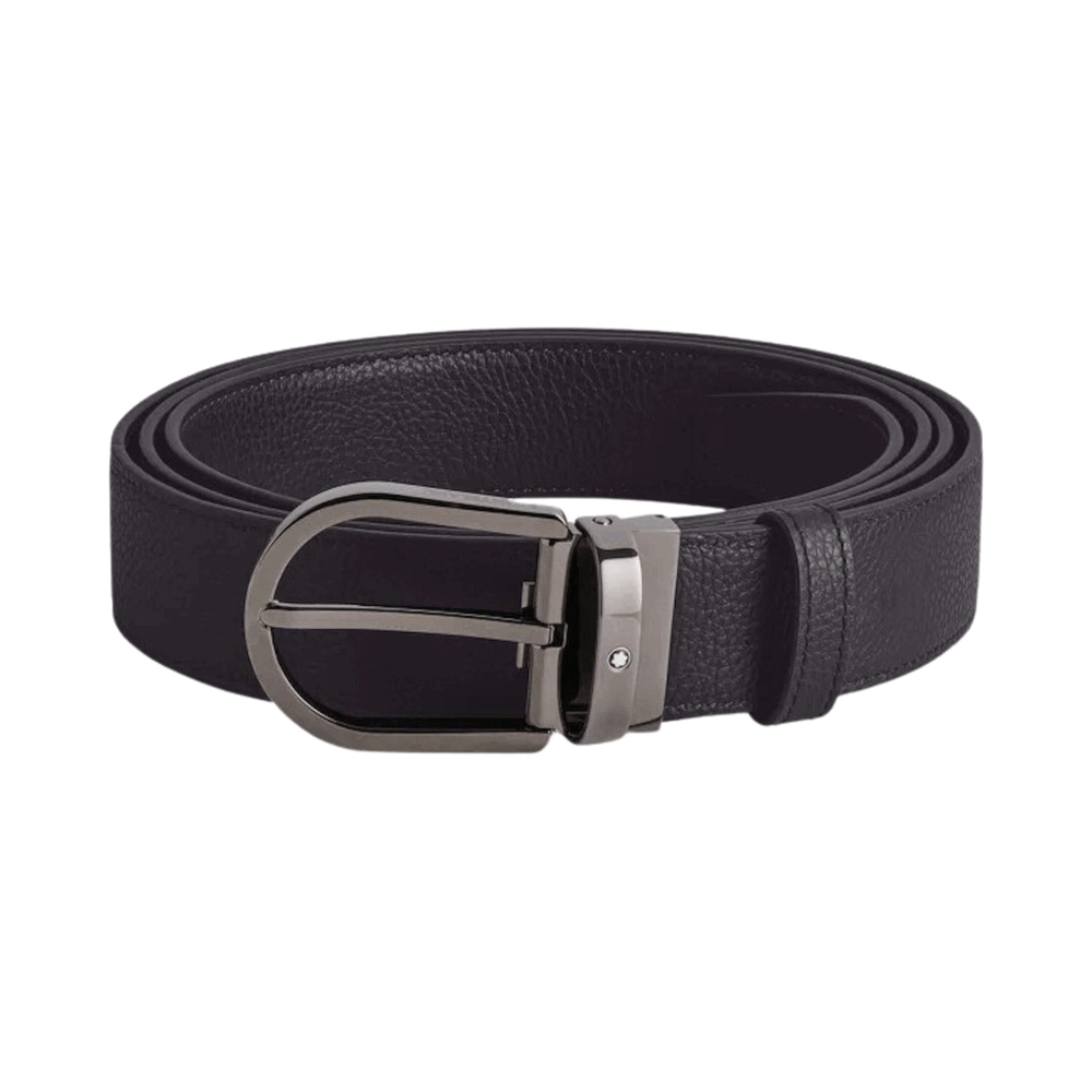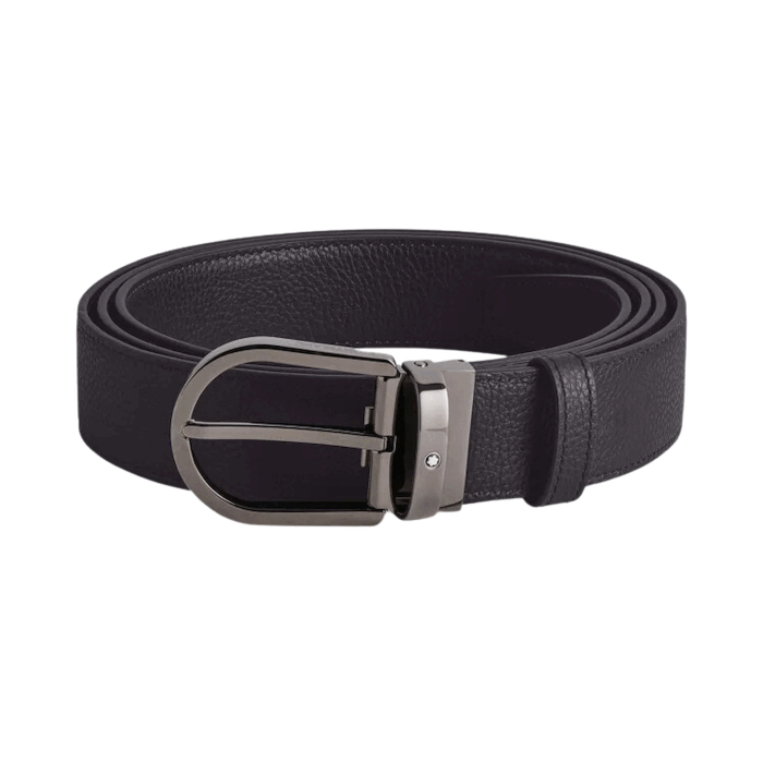 Montblanc Cintura reversibile in pelle blu notte/nera 35 mm con fibbia a ferro di cavallo