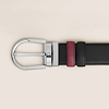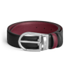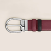 Scopri la versatilità di questa cintura reversibile da 35 mm, realizzata in raffinata pelle liscia nera da un lato e in pelle color cassis con stampa Saffiano dall’altro. Presenta una nuova ed elegante fibbia ad ardiglione a ferro di cavallo con finitura in palladio lucido, che valorizza con stile sia gli outfit formali che quelli casual.