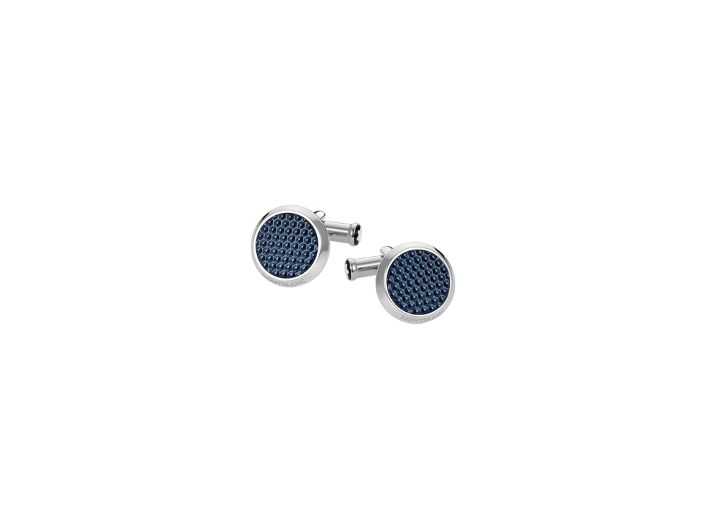 I gemelli Meisterstück celebrano uno stile sobrio ed elegante. L'intramontabile forma rotonda in acciaio pregiato con inserto in lacca blu a motivi esagonali, ispirata allo strumento da scrittura Meisterstück, crea un gioiello dalla forte identità Montblanc.