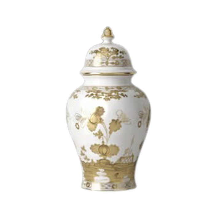 Vaso potiche in porcellana con decoro Aurum in oro zecchino. Collezione Oriente Italiano Gold Collection.