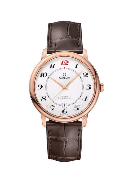 La cassa da 39,50 mm e la lunetta sono in oro rosso 18K lucido e l’orologio è corredato da un cinturino in pelle marrone con fibbia in oro rosso 18K. Questo segnatempo è animato dal calibro 2500 Co-Axial.