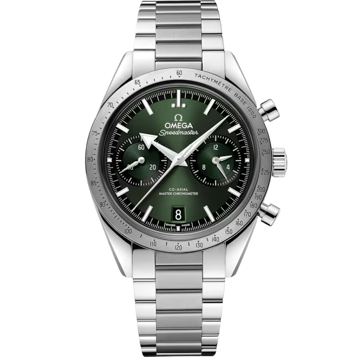 Il modello da 40,5 mm, ispirato al leggendario modello originale del 1957, è caratterizzato da una cassa in acciaio inossidabile e da un quadrante verde con indici delle ore rodiati e lancette “Broad Arrow”, con Super-LumiNova bianca. Presenta un datario a ore 6, un contatore dei piccoli secondi a ore 9 e contatori cronografici 12 ore e 60 minuti sul sotto-quadrante a ore 3.
