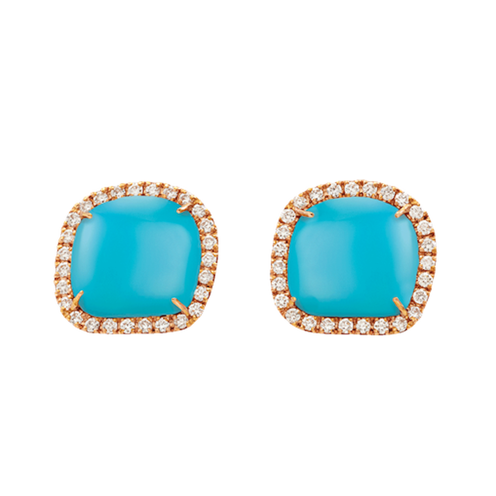 Orecchini a lobo Enchantè in oro rosa 18Kt, diamanti e turchese