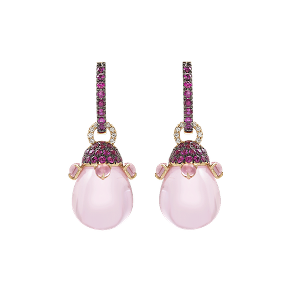 Orecchini Joyful in oro rosa 18Kt, diamanti, zaffiri rosa e poire in cristallo color rosa.
