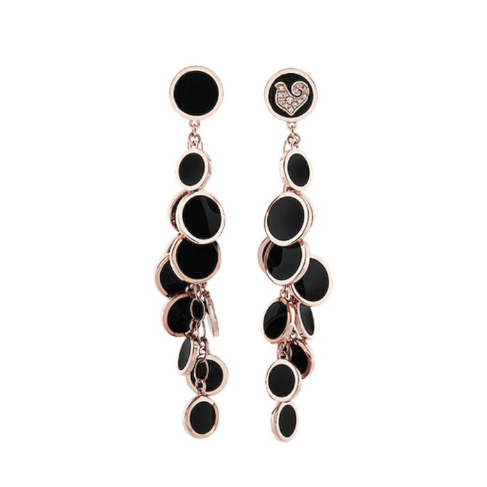 Orecchini pendenti lunghi Paillettes in oro rosa 18Kt, diamanti e smalto nero