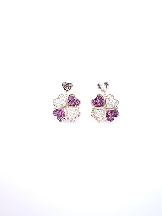 Orecchini Cuore di Leo collezione Love & Luck in oro rosa 9 kt con incastonati diamanti bianchi taglio brillante per una caratura di 0.72 e rubini per carati 10.70 Kt.