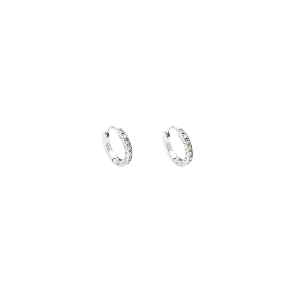 Orecchini Huggie Crystal Giovanni Raspini in Argento 925 e Zirconia Cubica, fatti a mano in Italia, diametro 1 cm, peso 1 g, chiusura a scatto per comfort e sicurezza, design elegante e brillante.