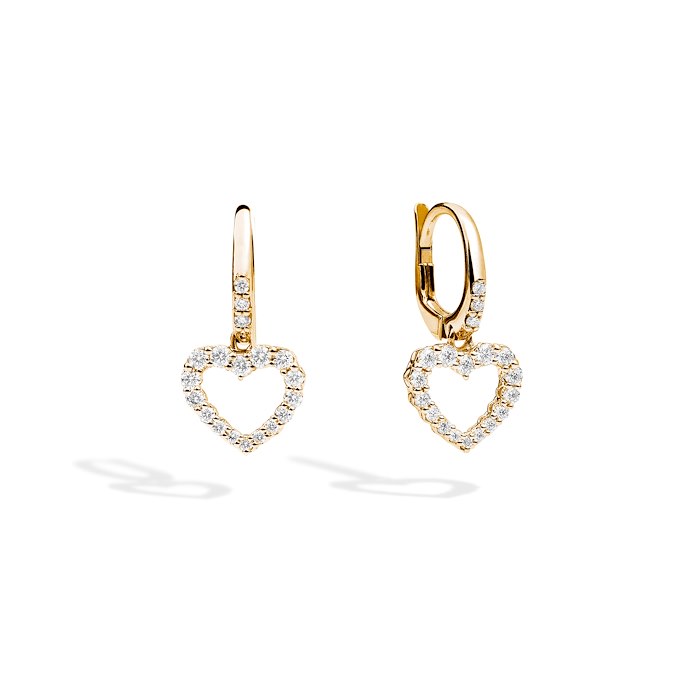 Orecchini forma a cuore con monachella, oro giallo 18 kt e diamanti naturali taglio brillante 0.47 Ct