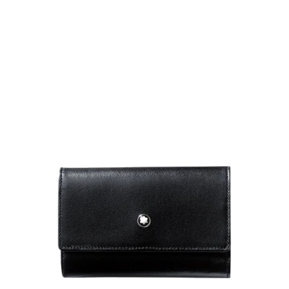 Astuccio portachiavi in pelle di vitello pieno fiore europea, nero lucido esclusivo Montblanc, fodera jacquard con marchio Montblanc, finiture metalliche, emblema Montblanc con anello finitura palladio, con anelli per 5 chiavi e 1 chiave della macchina