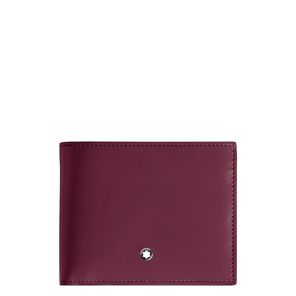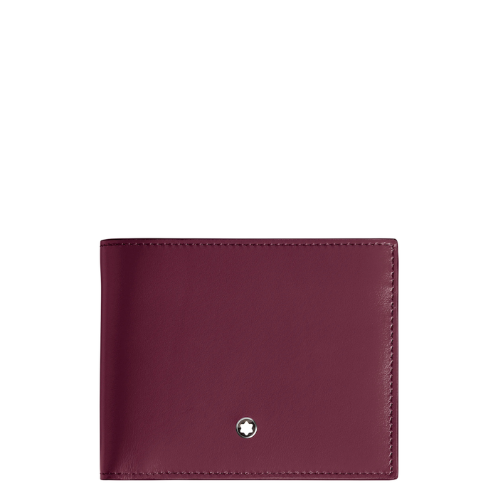 Sottile ed elegante, il nostro classico portafoglio pieghevole Meisterstück a 6 scomparti è un compagno raffinato per tutti i giorni. Pensato per contenere tutto l’essenziale, offre sei aperture per carte di credito, due scomparti per banconote e due tasche aggiuntive per ricevute. In pelle cassis elegante, è rifinito con l’emblema Montblanc.