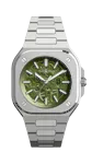 Il nuovo BR 05 Skeleton Green si inscrive perfettamente nella famiglia Bell & Ross BR 05, la linea sporty-chic lanciata nel 2019 e diventata rapidamente la seconda collezione iconica della Maison; dalle linee contemporanee, riprende il design emblematico di Bell & Ross, il tondo nel quadrato, ispirato ad uno strumento del pannello di controllo. Di dimensioni più compatte e caratterizzata da linee essenziali, la collezione abbandona guanti e casco da pilota a favore della giacca elegante e delle sneakers del giovane cittadino trendy. Il nuovo BR 05 Skeleton Green è la quarta versione della famiglia BR 05 Skeleton e i diversi modelli di questa collezione si distinguono per il colore del vetro che ricopre il loro movimento.Questo segnatempo, elegante all’esterno e complesso all’interno, gioca coi contrasti: grafico nel design della cassa e sofisticato nella complessità del suo meccanismo lasciato a vista.Nonostante la sua scheletratura, il BR 05 Skeleton Green è leggibile e preciso, caratteristiche imprescindibili per Bell & Ross.