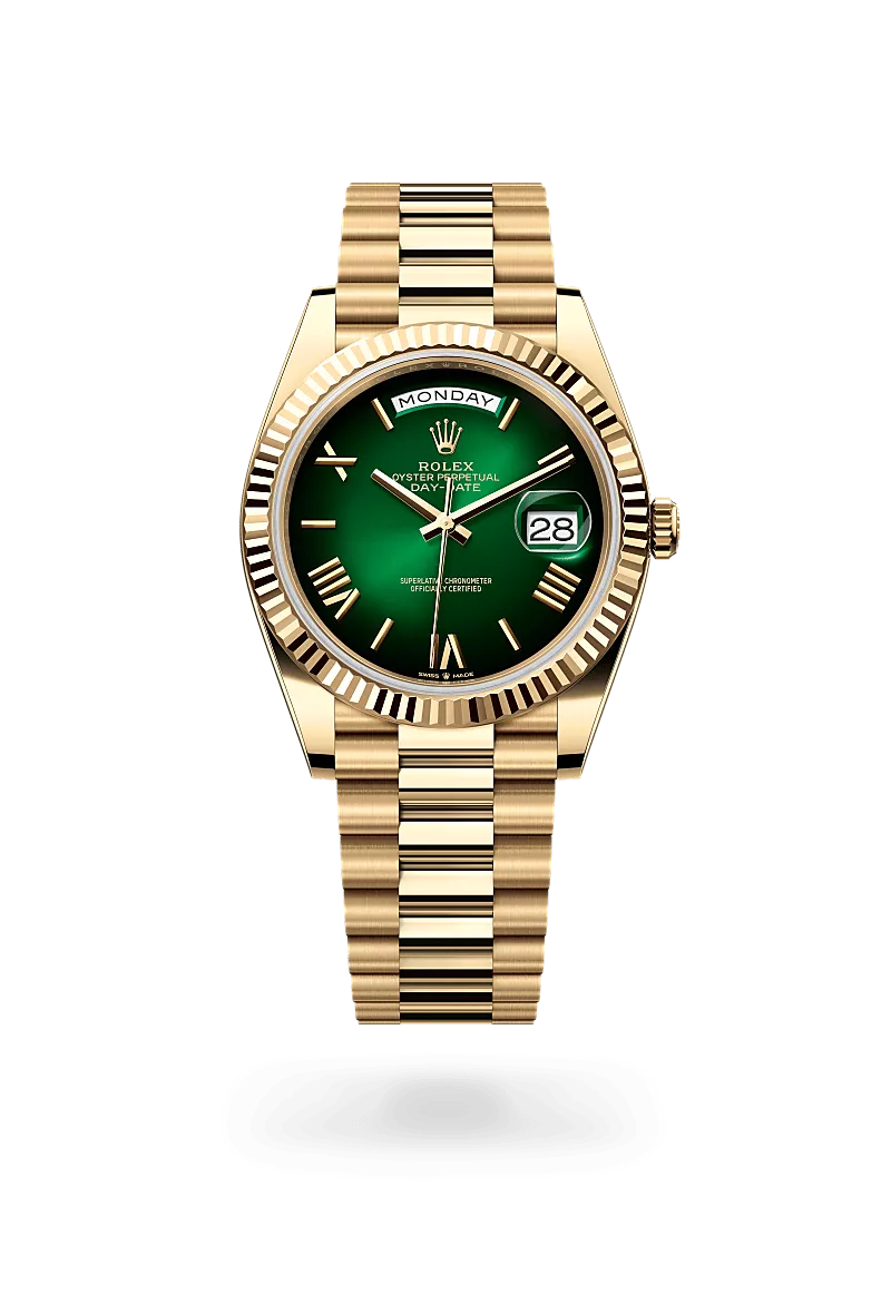 La lunetta zigrinata è un tratto distintivo degli orologi Rolex. La lunetta zigrinata dell’Oyster aveva in origine una funzione: serviva ad avvitarla alla cassa, contribuendo così a garantire l’impermeabilità dell’orologio. La zigrinatura era, di conseguenza, l’esatta riproduzione di quella del fondello che, per le stesse ragioni, veniva avvitato alla cassa con degli appositi strumenti Rolex. Col tempo la zigrinatura si è trasformata in un elemento estetico, un segno distintivo di Rolex che per questo Day-Date 40 è disponibile in oro.