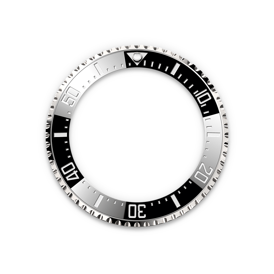 La lunetta girevole unidirezionale graduata 60 minuti del Deepsea Challenge permette di leggere i tempi di immersione e di decompressione con precisione e in assoluta sicurezza. È dotata di un disco Cerachrom nero brevettato e prodotto da Rolex in una ceramica praticamente antiscalfitture e inalterabile. La graduazione è rivestita di un sottile strato di platino mediante deposito PVD (Physical Vapour Deposition). Sul quadrante trovano spazio gli ampi indici delle ore e le lancette Chromalight riempiti di una sostanza luminescente a emissioni blu di lunga durata, per una leggibilità eccezionale anche al buio.