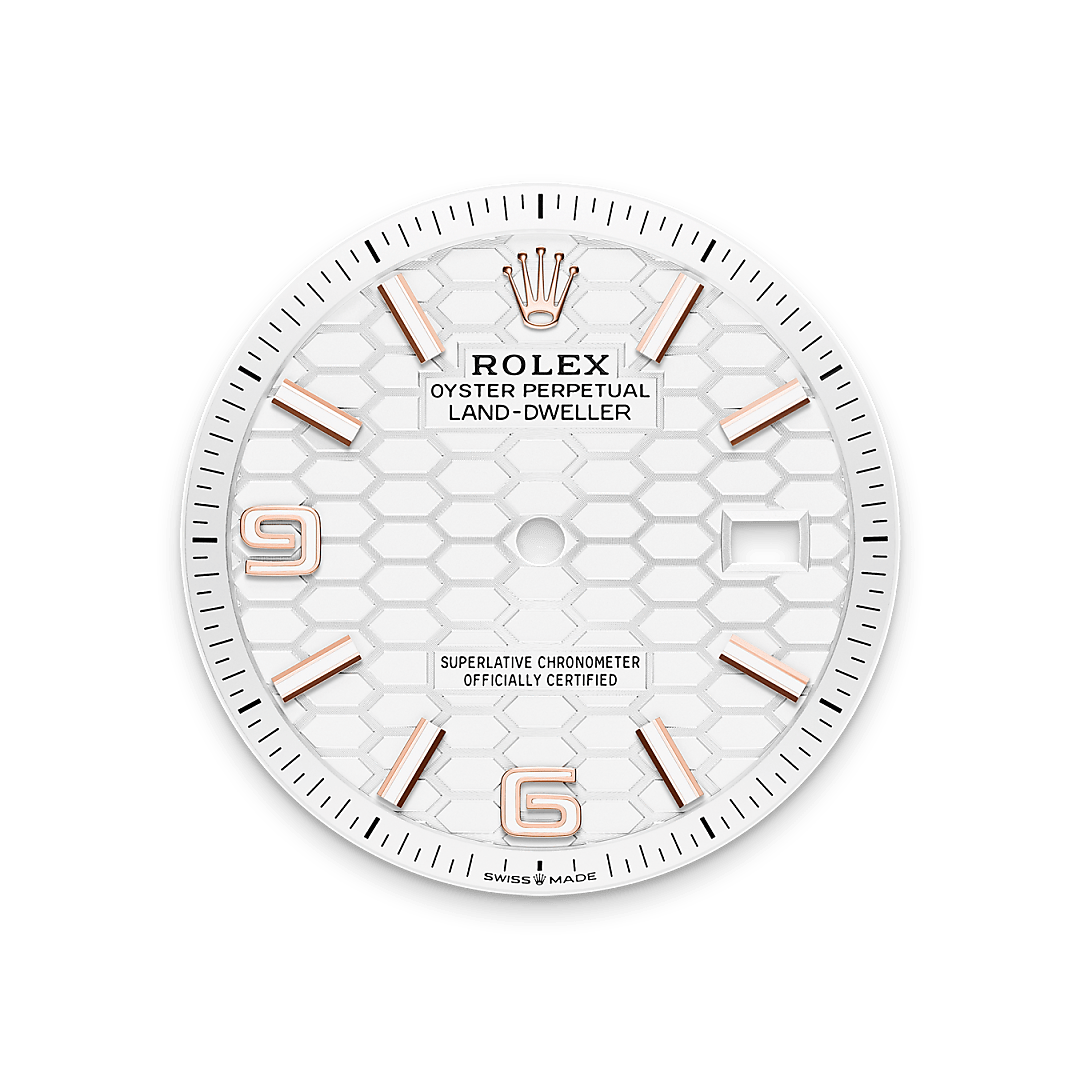 Questo quadrante è impreziosito dal motivo a nido d’ape con finitura satinata. Per realizzarlo, il Marchio ha fatto ricorso sia alle tecniche tradizionali, sia ai procedimenti di alta tecnologia, tutti perfettamente dominati in‑house. Il taglio degli alveoli e l’esecuzione delle striature all’interno delle scanalature che li separano richiedono l’intervento del laser a femtosecondi. Il quadrante dispone della visualizzazione Chromalight, con numeri aperti e indici luminescenti che gli conferiscono una leggibilità ottimale in ogni circostanza. Le lancette, anch’esse luminescenti, sono state appositamente disegnate per questo modello.