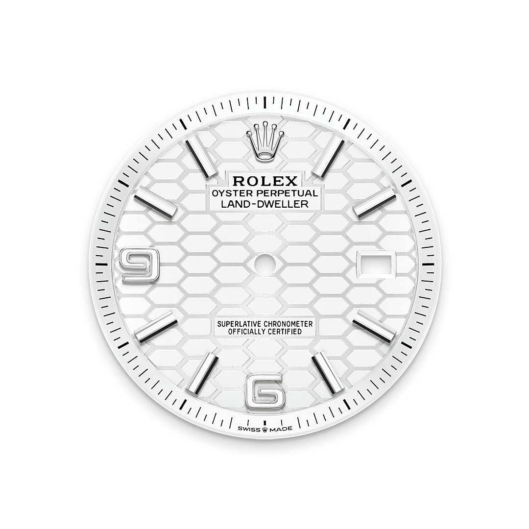 Questo quadrante è impreziosito dal motivo a nido d’ape con finitura satinata. Per realizzarlo, il Marchio ha fatto ricorso sia alle tecniche tradizionali, sia ai procedimenti di alta tecnologia, tutti perfettamente dominati in‑house. Il taglio degli alveoli e l’esecuzione delle striature all’interno delle scanalature che li separano richiedono l’intervento del laser a femtosecondi. Il quadrante dispone della visualizzazione Chromalight, con numeri aperti e indici luminescenti che gli conferiscono una leggibilità ottimale in ogni circostanza. Le lancette, anch’esse luminescenti, sono state appositamente disegnate per questo modello.