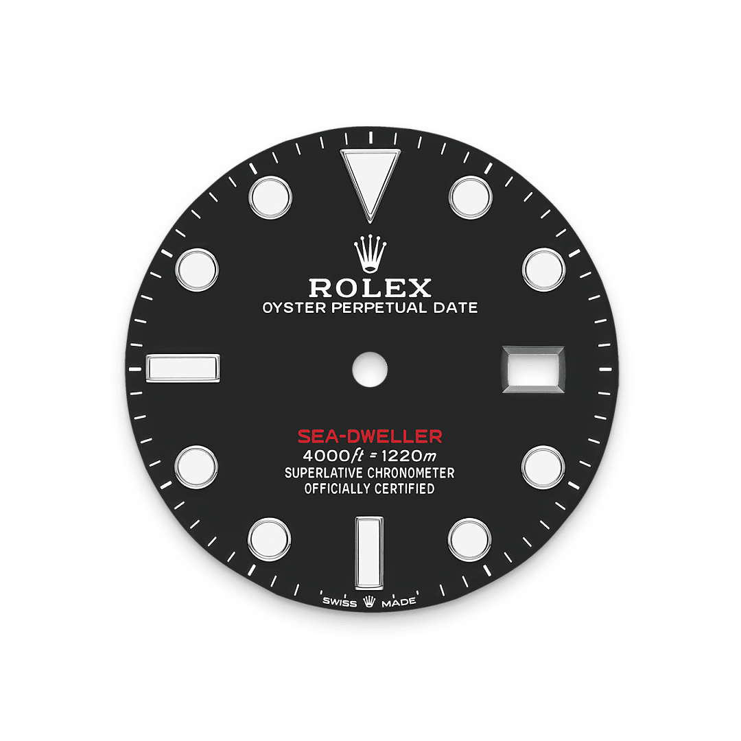 Il quadrante nero del Sea?Dweller è dotato delle grandi lancette e degli ampi indici presenti esclusivamente sui modelli Professionali Rolex. Il quadrante esibisce il nome “Sea?Dweller” scritto in rosso, in riferimento al primo modello. L’innovativa visualizzazione Chromalight sul quadrante permette una leggibilità ancora maggiore negli ambienti con scarsa luminosità. La luminescenza blu ha una durata di circa 8 ore, con una luminosità uniforme: praticamente il doppio rispetto ai materiali luminescenti tradizionali.