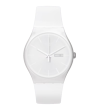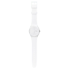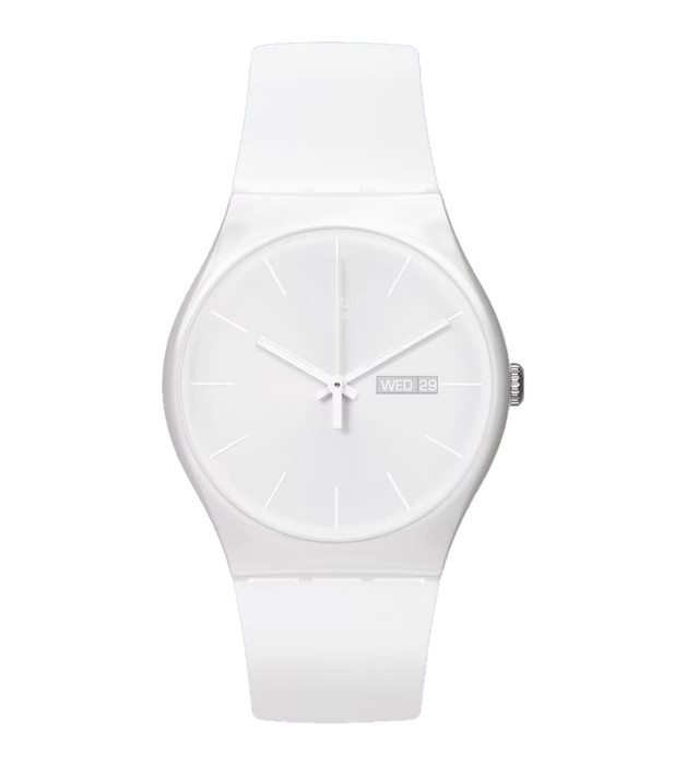 Il quadrante di questo elegante orologio presenta una raffinata finestra bianca su grigio chiaro per la data a ore 3, mentre le lancette bianche indicano l'ora del giorno. La cassa bianca biosourced si abbina al cinturino, al passante e alla fibbia bianchi.