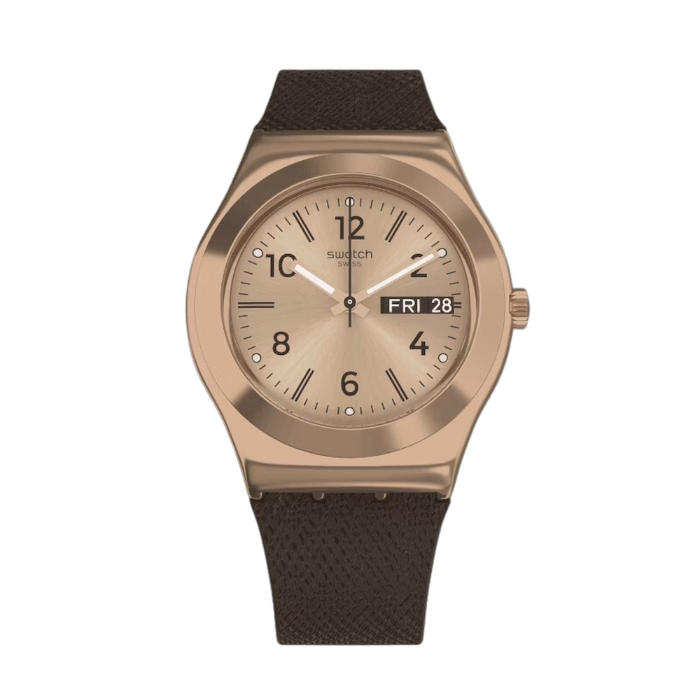 BROWNEE ha un aspetto davvero delizioso con il suo cinturino in silicone marrone. La cassa e la fibbia in PVD color oro rosa si abbinano dolcemente al quadrante.