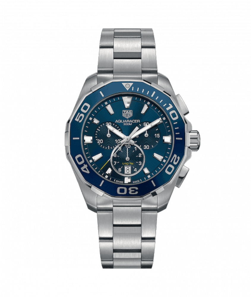 Un cronografo al quarzo da 43 mm con funzionalità professionali da immersione. Il legame di Heuer con il mondo degli sport acquatici a pressioni elevate nacque nel 1895, anno in cui la Maison ottenne il brevetto per la sua prima cassa impermeabile. Il robusto e versatile Aquaracer perpetua questa tradizione.