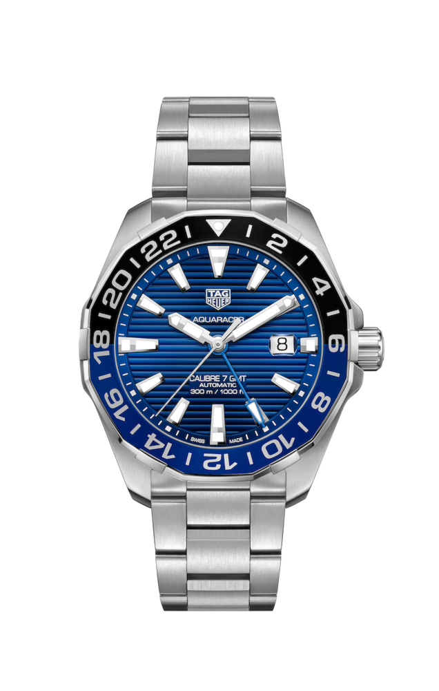 Un Aquaracer GMT in acciaio inossidabile con uno con splendido quadrante blu spazzolato con effetto soleil, animato dal Calibre 7. All'altezza di tutte le esperienze della vita e pronto a ogni sfida, è l'orologio perfetto per tutti i giorni, funzionale ed elegante, affidabile in ogni condizione.