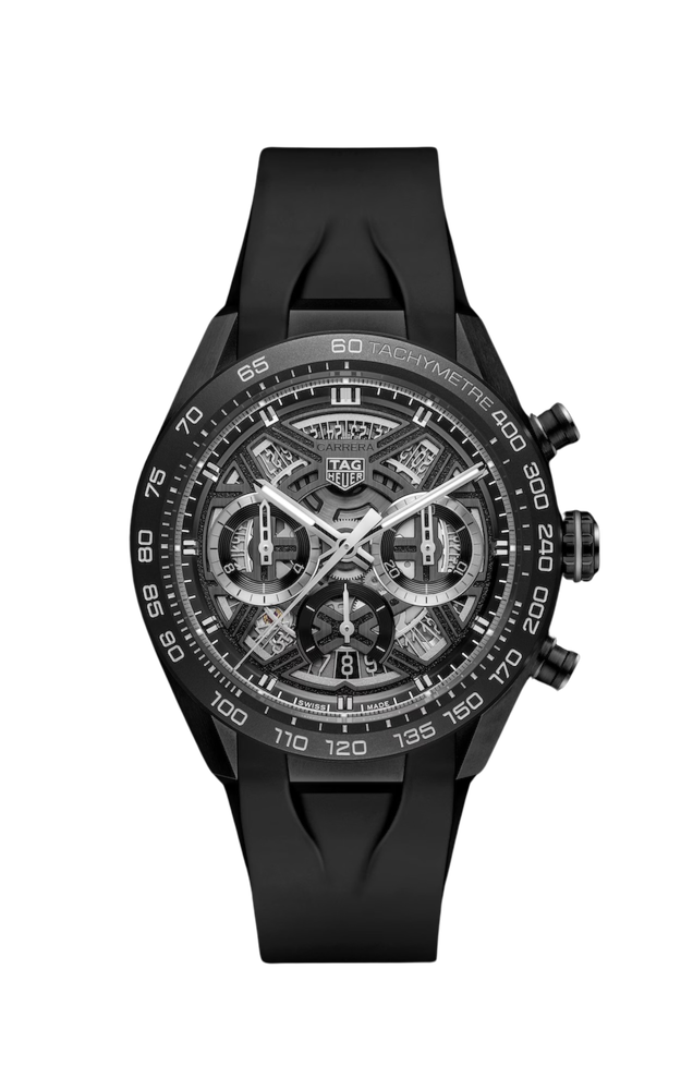 Immergiti nell'essenza degli sport automobilistici con questo affascinante TAG Heuer Carrera Chronograph da 44 mm. Vestito interamente di nero, è un'audace dichiarazione di eleganza e potere, pensata per chi vive il brivido delle corse.