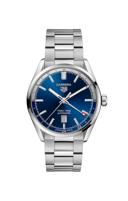 Il TAG Heuer Carrera Twin-Time è un modello elegante dal carattere determinato per chi è sempre in movimento per lavoro. Con un originale quadrante blu e design reimmaginato, quest'orologio mostra contemporaneamente due fusi orari. Il business partner ideale.