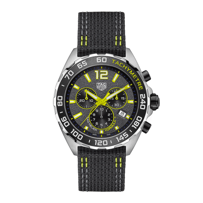 Un cronografo ispirato alle corse automobilistiche dotato di un quadrante grigio asfalto, irrinunciabile per chi ama le sfide ad alta velocità. Versatile, robusto e nato per battere ogni avversario, questo orologio sportivo è impermeabile fino a 200 metri, grazie alla corona a vite in PVD nero.