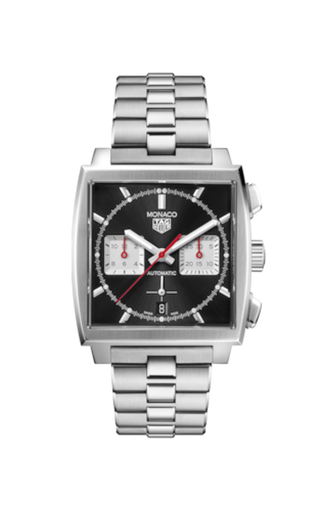 Questo cronografo Monaco ha un elegante quadrante nero spazzolato effetto soleil racchiuso in una cassa quadrata di 39 mm, con indicatore dei piccoli secondi rosso. Per celebrare la nostra più celebre icona, rivisitiamo i colori tradizionali della nostra Collezione Monaco e presentiamo anche il movimento Heuer 02, progettato e realizzato interamente nella nostra manifattura.