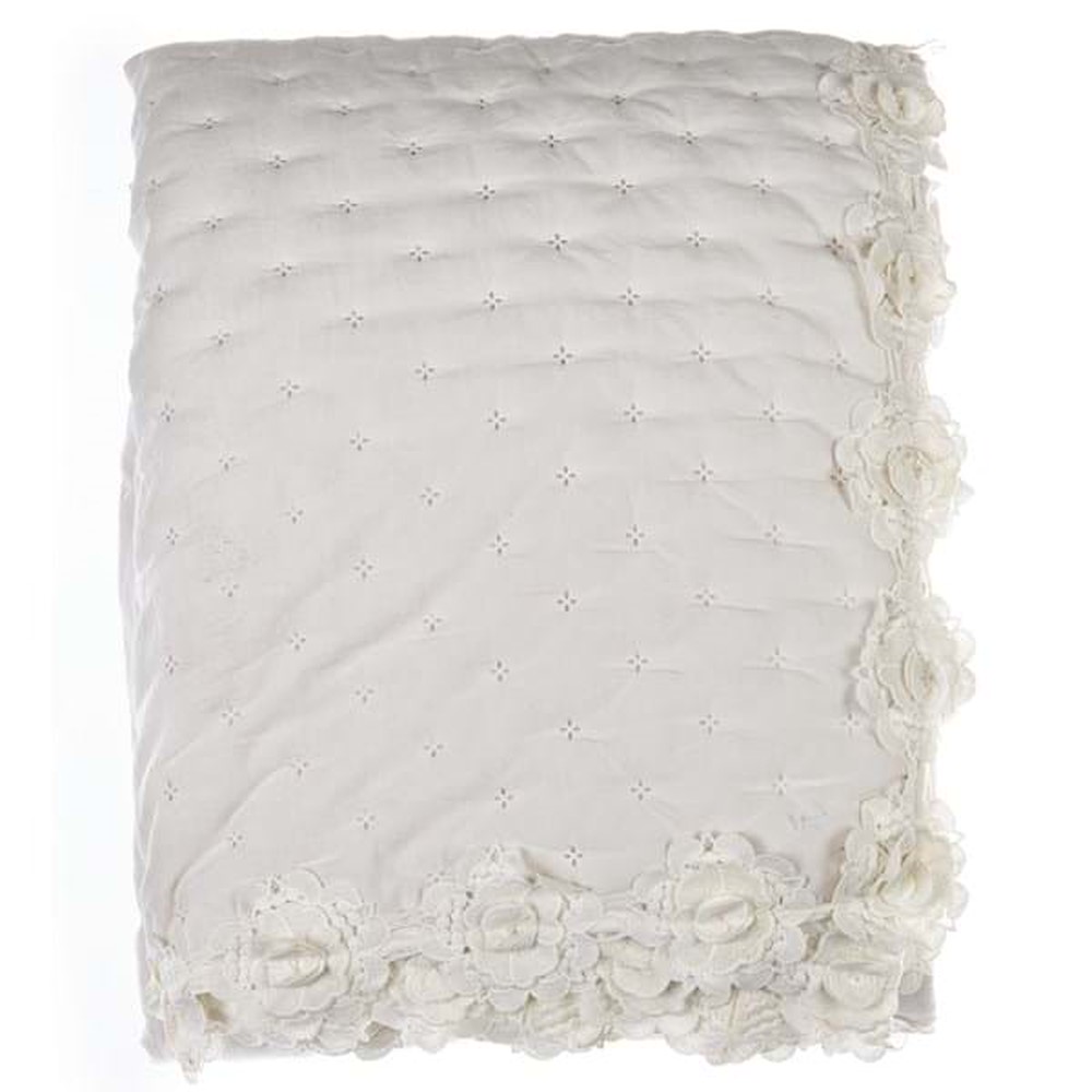 Blanc mariclò romantico copriletto matrimoniale trapuntato con bordo in pizzo color panna, dimensioni 260 x 260 cm
