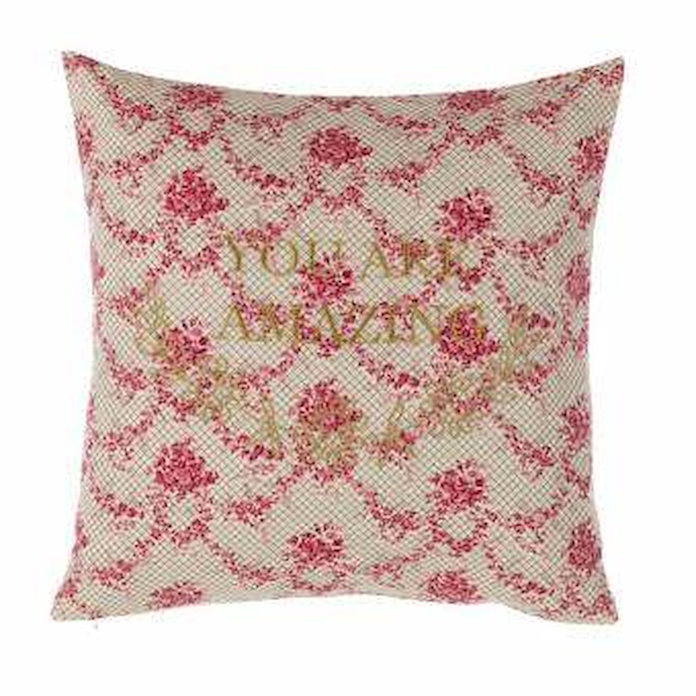 Cuscino linea "You are amazing" ricamato con scritta.