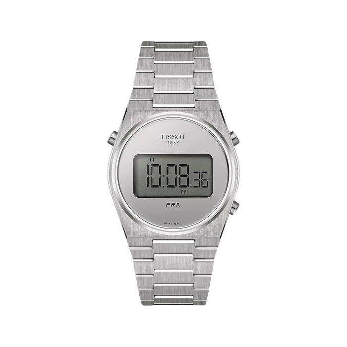 Il Tissot PRX Digital, un mix armonioso dell'iconico design PRX del 1978 e del Tissot Digital Quartz (Calibr o4012), mostra brillantemente un ibrido di epoche passate e influenze digitali. Unendo perfettamente l'estetica retrò con un tocco contemporaneo, è il segnatempo per i pionieri di oggi. Il PRX Digital, disponibile nelle opzioni da 35 mm e 40 mm e in una varietà di colori, soddisfa tutti i polsi, mentre la moltitudine di funzioni - doppio fuso orario, giorno-data, cronografo e altro ancora - soddisfa tutte le esigenze. Racchiusi da una cassa resistente all'acqua fino a 100 metri e corredati da un bracciale satinato e una chiusura pieghevole a tripla lama, questi segnatempo sono realizzati sia per la resistenza che per il comfort. La collezione Tissot PRX Digital simboleggia un viaggio nel tempo, un omaggio al passato e un brindisi al futuro.