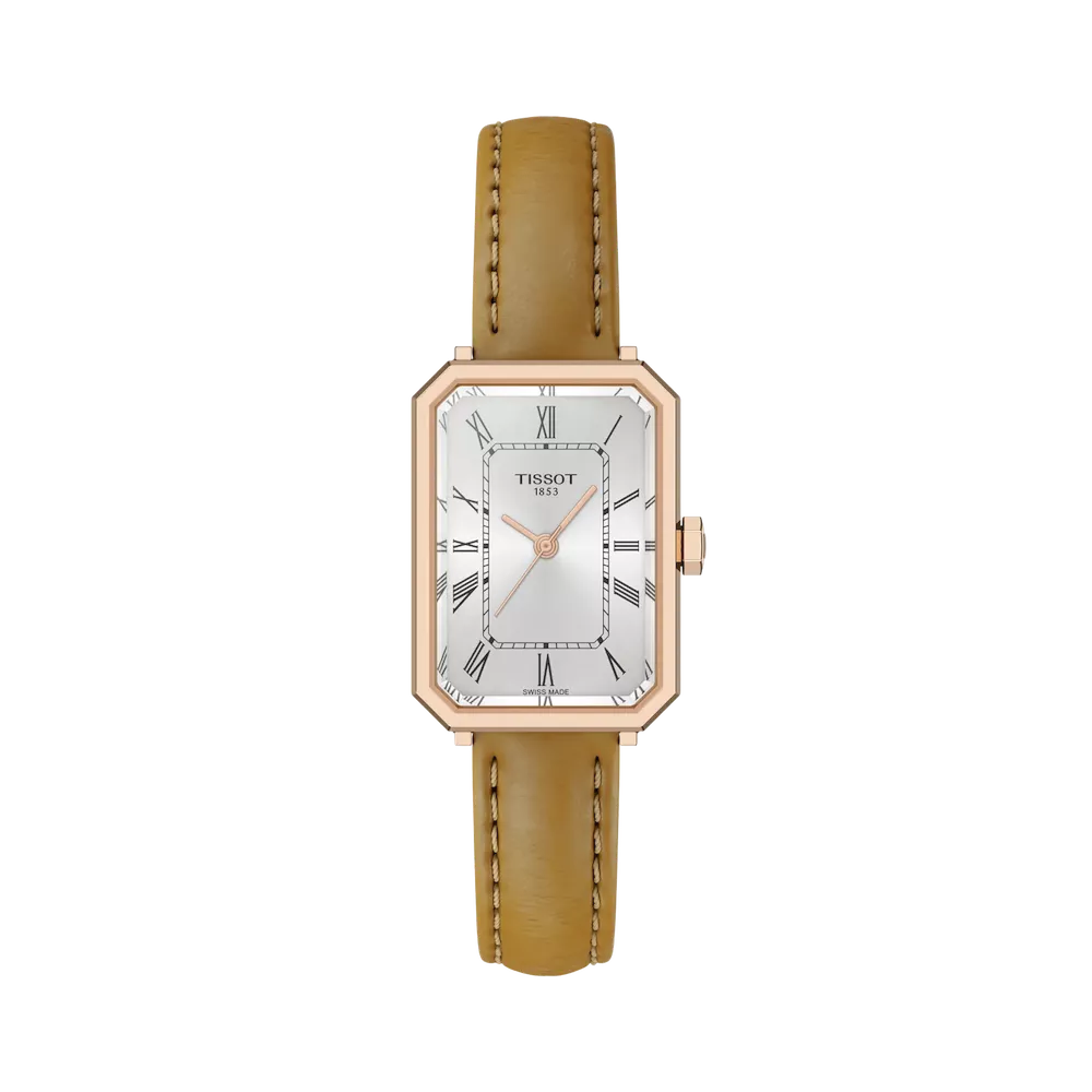 Tissot SRV da 30 mm con movimento al quarzo svizzero, vetro zaffiro antigraffio e cinturino in pelle regolabile intercambiabile a sgancio rapido.