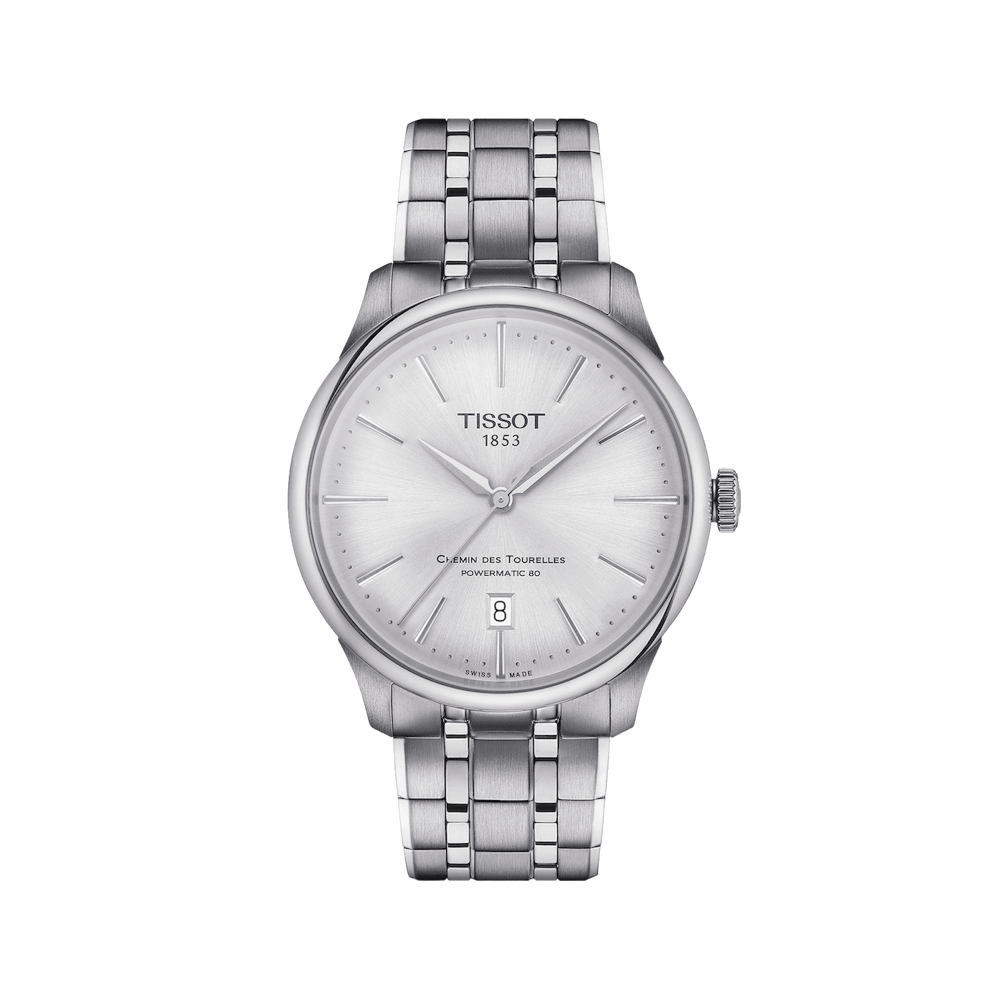 Chiudi gli occhi e pensa ad un classico orologio svizzero e vedrai solamente Tissot Chemin des Tourelles. Prende il nome dalla strada che conduce alla sede di Tissot tra le montagne svizzere, è l'icona del brand: rotondo, classico, meccanico, senza età. Ora aggiornata e raffinata, questa edizione ha un vetro zaffiro delicatamente bombato che si trova su un quadrante a raggio di sole morbido con indici semplici ed eleganti, ciascuno sfaccettato per catturare la luce in modo sobrio ma sofisticato. Il movimento è Nivachron Powermatic 80, un movimento meccanico automatico all'avanguardia con una riserva di carica di 80 ore e un elevato antimagnetismo. Un orologio per tutti i tempi.