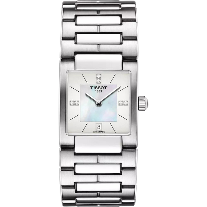 Tissot T02 | Acciao inossidabile | Grigio | 316L stainless steel case | SQUARE | Impermeabile fino a 5 bar (50 metri/165 piedi) | 31.60×23.00×7.33 | Numeri romani Diamanti |