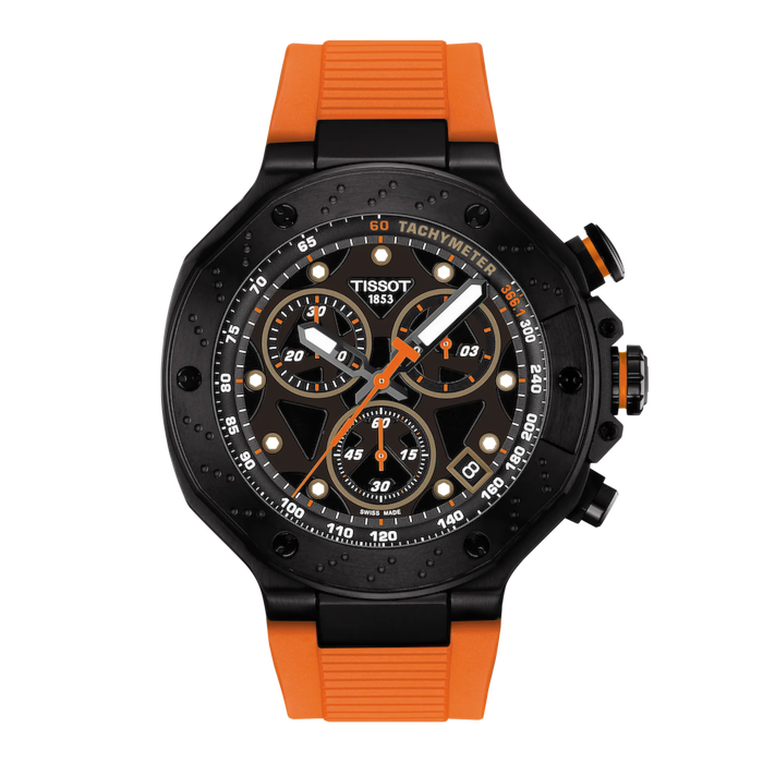 Quest'anno, l'iconica collezione T-Race ispirata alle moto da corsa si amplia con nuovi riferimenti, tra cui questo esclusivo modello T-Race Quartz Chronograph. Tissot ha trovato ispirazione nello spirito dello sport per produrre orologi che riflettono la natura dinamica delle moto stesse e l'emozione dello sport. Con il suo disco freno e il calibro sulla lunetta, i riferimenti ispirati al manubrio e le alette di raffreddamento del motore raffigurate sul lato della cassa, questo orologio è stato immaginato come un vero omaggio alla disciplina. Resistente all'acqua, con un movimento cronografo al quarzo e distinte lancette delle ore e dei minuti rivestite con SuperlumiNova, questo orologio sarà il compagno ideale per gli appassionati di moto da corsa.