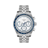 Presentato per la prima volta negli anni '60, il PR516 è stato ispirato dal mondo ad alta velocità delle corse automobilistiche. Mentre Tissot espande la linea PR516, continua ad alimentare lo spirito di coloro che cercano un orologio implacabile come le loro attività, spingendoli ad affrontare le sfide a testa alta, proprio come gli eroi che lo indossano. Il cronografo, il tachimetro e il pulsometro Valjoux lavorano all'unisono e sono costruiti per catturare ogni battito quando la vita sembra esaltante. Con velocità e frequenza cardiaca monitorate sulla lunetta e il tempo chiaramente visualizzato sul quadrante bianco con accenti blu, questo design offre un'esperienza fluida e intuitiva, evocando il cielo sconfinato e il potenziale sconfinato che ci attende. I contatori, posizionati nella parte inferiore del quadrante, esaltano l'aspetto dinamico dell'orologio.