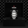 La corona a vite in acciaio, decorata con la rosa TUDOR in rilievo, insieme ai pulsanti a vite posizionati a ore 2 e 4, garantisce un'eccellente protezione contro le infiltrazioni d'acqua.