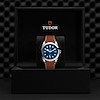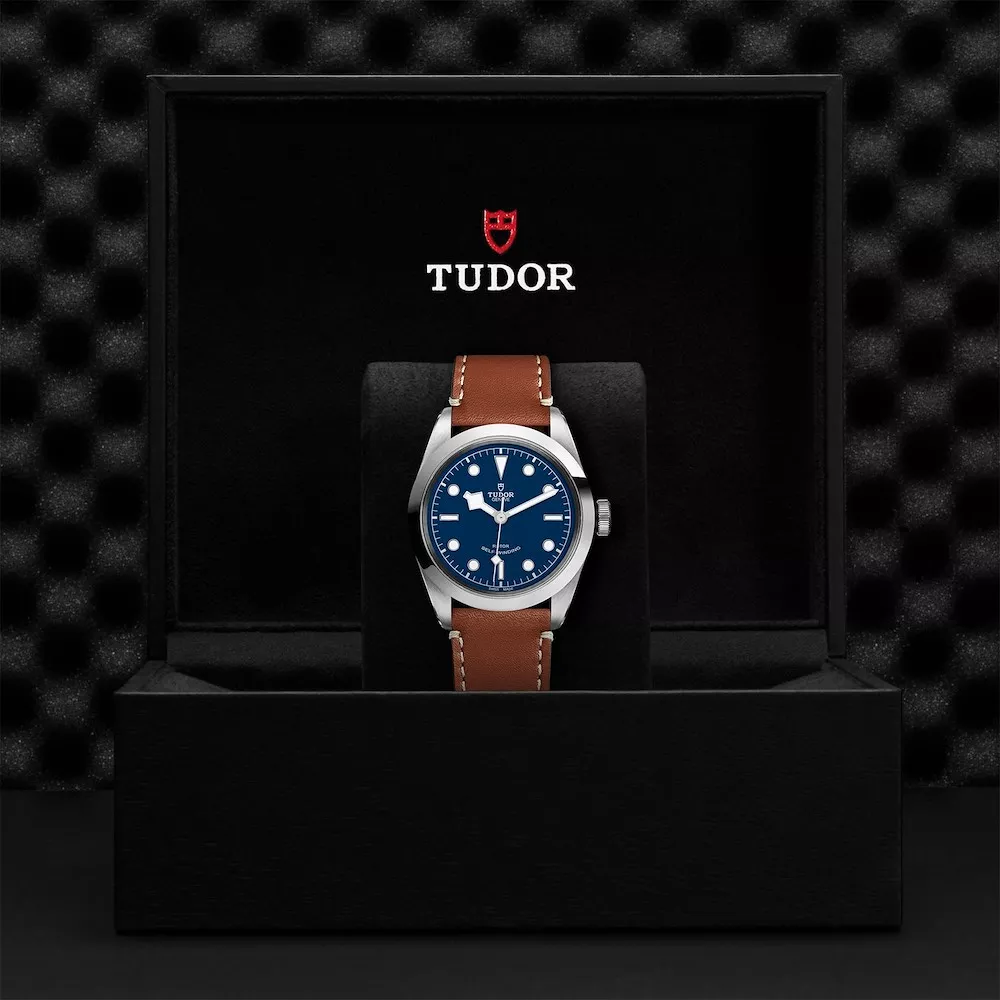 Affidabile, riconoscibile e dal prezzo contenuto, questo orologio Tudor Black Bay 41 mm Automatic Watch M79540-0005 è perfetto come orologio da tutti i giorni. Ha una cassa in acciaio inossidabile da 41 mm con finitura lucida e satinata, una lunetta in acciaio inossidabile liscia e lucida e un quadrante pulito di colore blu con indici luminescenti bianchi e lancette angolari di ore e minuti. Questo modello è animato dal movimento meccanico a carica automatica calibro T600 con circa 38 ore di riserva di carica. L'orologio è impermeabile fino a 150m/500ft. Un cinturino in pelle marrone con fibbia pieghevole e chiusura di sicurezza completa il look distinto di questo segnatempo.