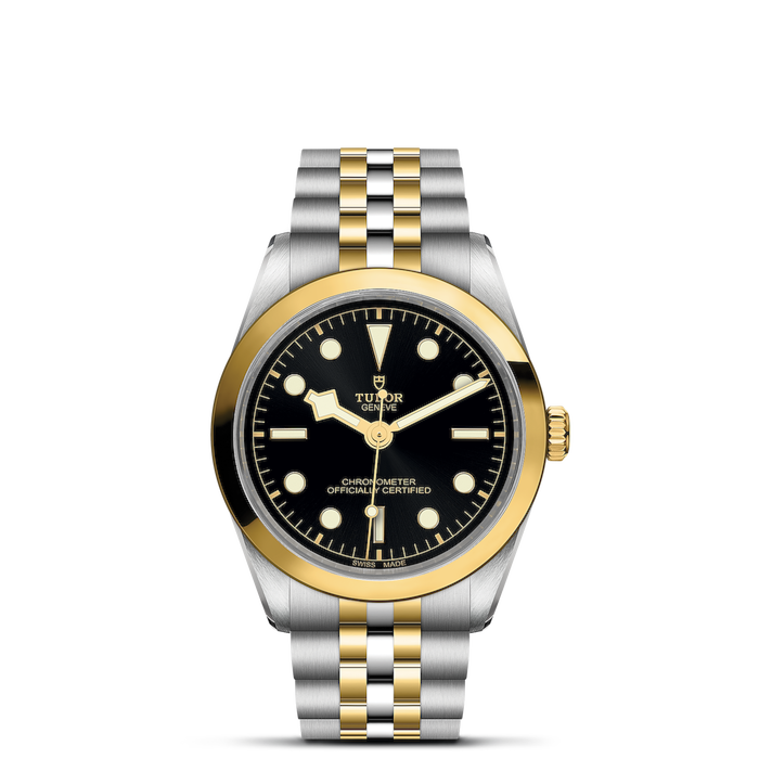 Corona a Vite: La corona a vite, con la distintiva rosa Tudor in rilievo, è realizzata in acciaio rivestito da uno strato di oro giallo spesso 0,1 mm, aggiungendo un tocco di lusso al design.