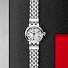 Lunetta: La lunetta liscia in acciaio con finitura lucida completa il profilo elegante di questo orologio, aggiungendo un tocco di raffinatezza e semplicità al design complessivo.