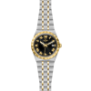 Quadrante nero con finitura soleil, impreziosito da numeri romani applicati e datario a ore 3, per un’estetica elegante e funzionale.